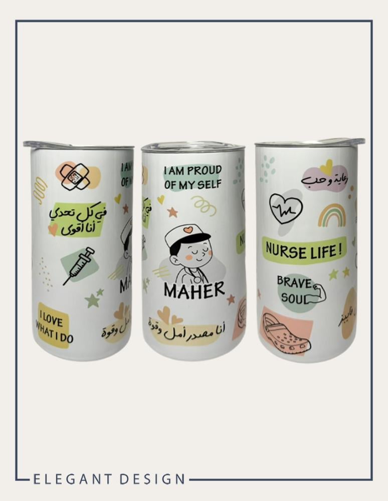 كوب حراري عملي بتصميم مميز يُطبع عليه تصاميم المهنة التي تختارها مع إمكانية إضافة اسمك